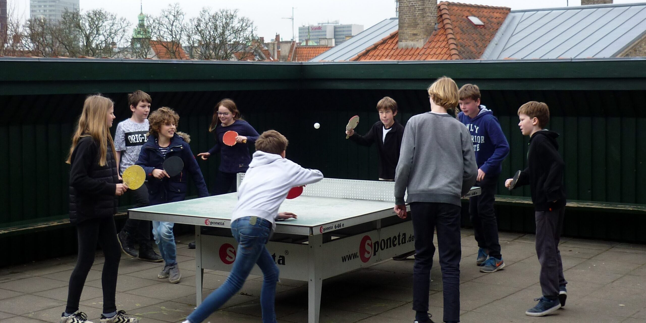 På den tysk-danske privatskole Sankt Petri i indre København har de både et bordtennisbord på tagterrassen og et i skolegården. En stor del af eleverne har derfor kastet sig over bordtennis.