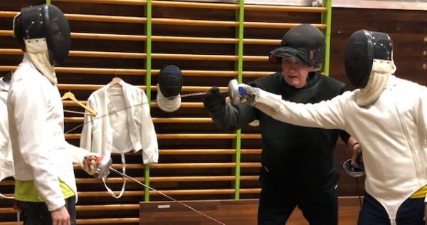 “Det handler om små skridt med god balance både fremad og bagud. Meget på samme måde, som man bevæger sig på en kort bold i bordtennis. Det var intensivt og pulsen kom hurtigt op. Lige som i bordtennis falder hånden, og man bliver bredbenet, når man er træt”, fortæller Linus Mernsten om dagens fægtesession. Se billeder og video herunder: