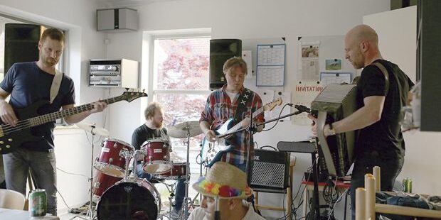 Sune Bjørn Larsen yderst til højre på harmonika. Foto: Lotte Bak Svenningsen.