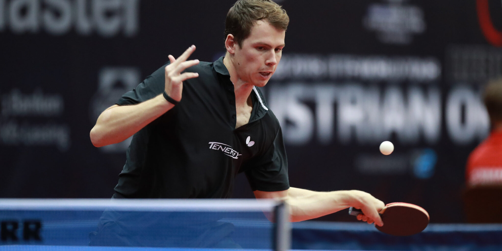 Anders Lind i kamp ved Austrian Open. Foto: ITTF.