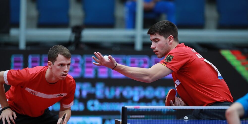 Jonathan Groth (tv.) og Patrick Franziska, Tyskland er godt i gang med titelforsvaret. Foto: Rémy Gros.