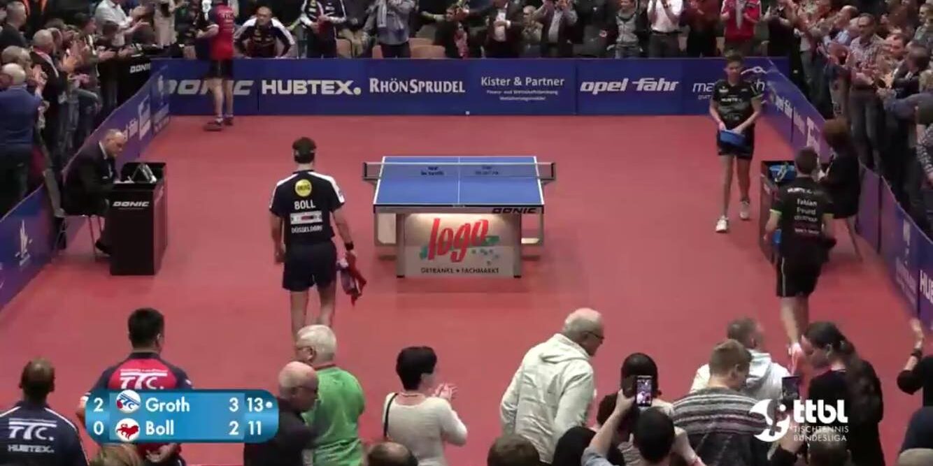 Jonathan Groth – Timo Boll, 3-2 (11-5, 5-11, 12-10, 9-11, 13-11)