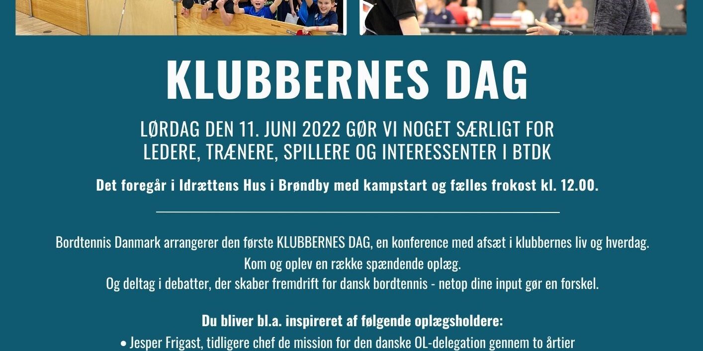 Den 11. juni afholder BTDK for første gang arrangementet Klubbernes Dag i Idrættens Hus for alle klubledere, trænere og spillere, der har interesse i bordtennissportens fremtid.