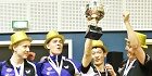 Roskildes danske mestre er fra venstre Finn Tugwell, Allan Bentsen, træner Mads Skovsen, Yujia Zhai, Casper Gammelmark og Claus Schou Nielsen. Foto: Jens Luckenbach.