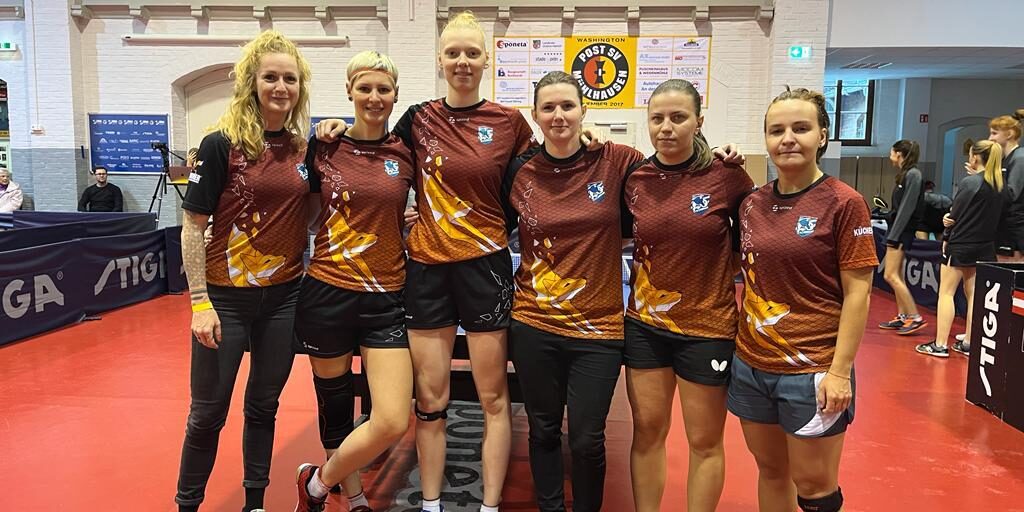 - Der er masser af damer og piger og ret spredt ud i niveau. Vi har næsten altid et overtal af piger/damer til træningerne, og de fleste er mellem 18 og 28, ligesom jeg selv. Men jeg synes faktisk, at jeg passer ret perfekt ind i gruppen og mener, at jeg er ret 50/50 med ret mange af dem. Så er der selvfølgelig dem fra 2. Bundesliga (klubbens førstehold), hvoraf især de to bedste er virkelig gode. Så generelt er niveauet rigtigt godt, men samtidig passende. Og så er der både deffere, korte knopper, penhold, you name it.