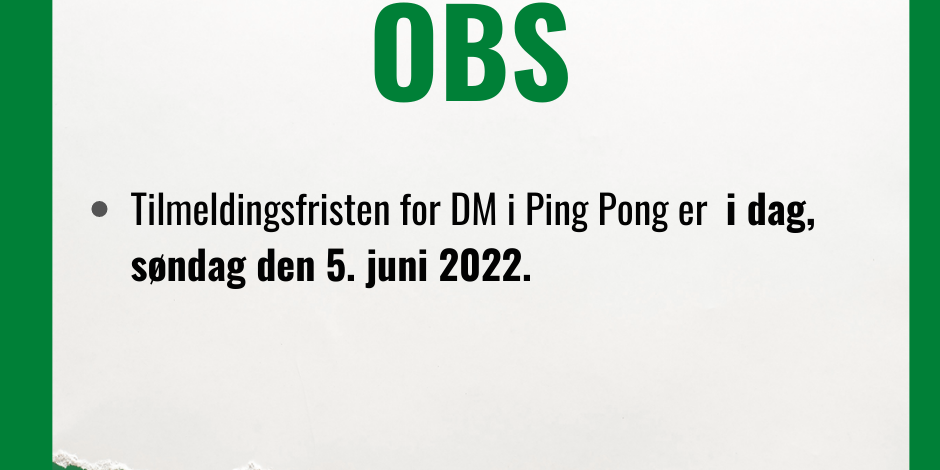 I dag, søndag den 5. juni 2022, er det sidste frist for at tilmelde sig DM i Ping Pong. Skal du prøve kræfter med DM i Ping Pong?  Så skynd dig ind og tilmeld dig!