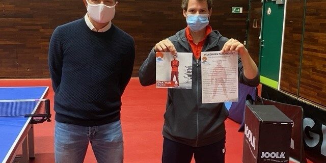 Chef de mission for det danske OL-hold Søren Simonsen har været forbi træningshallen i Idrættens Hus i Brøndby for at ønske Jonathan Groth velkommen på OL-holdet, der skal kæmpe med Dannebrog på brystet ved OL i Tokyo til næste år.