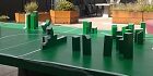 Det færdige Wrong Pong-bord inspireret af Brøndby Strand Parkens bebyggelse.